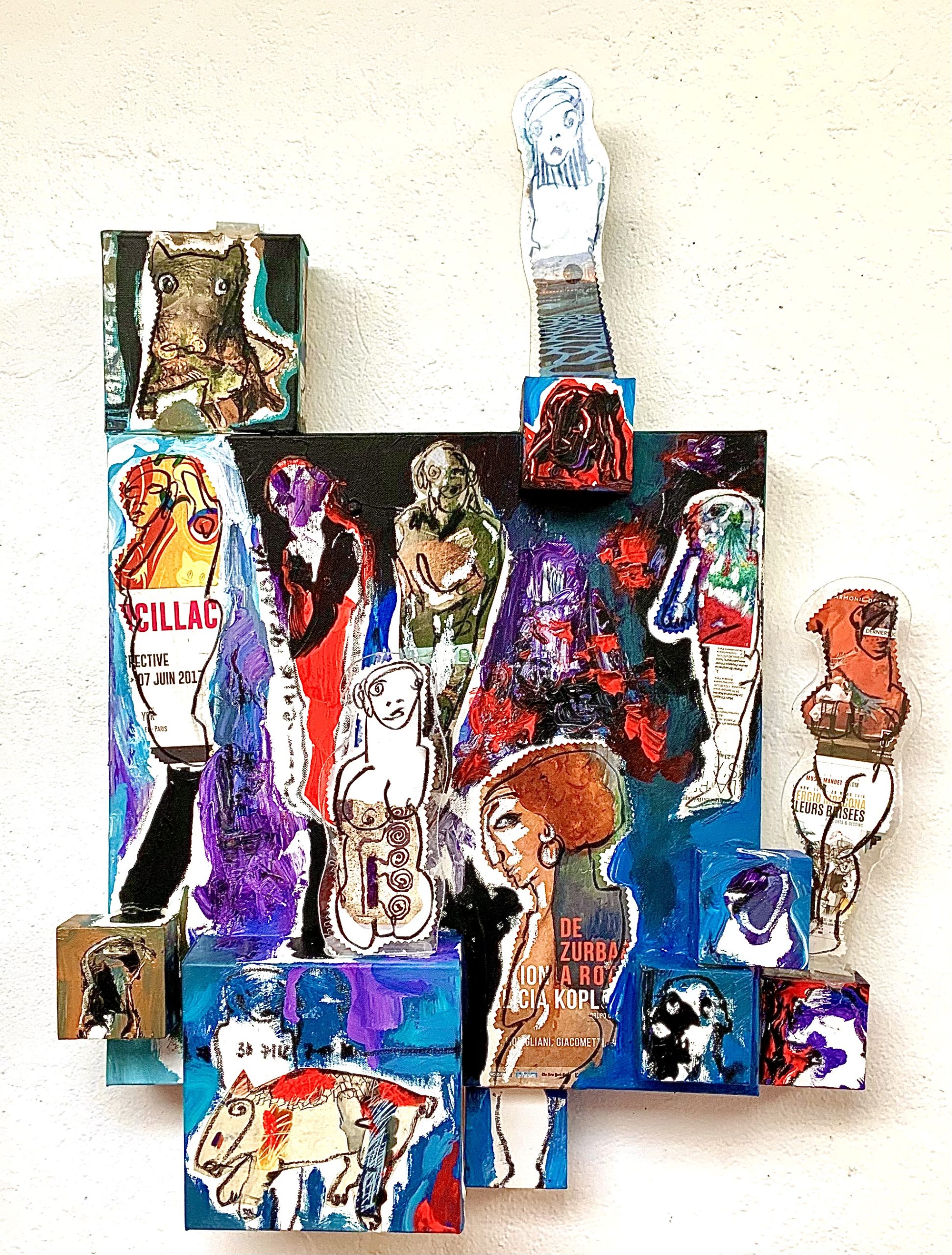 Technique mixte . Acrylic collages pastels et fusain