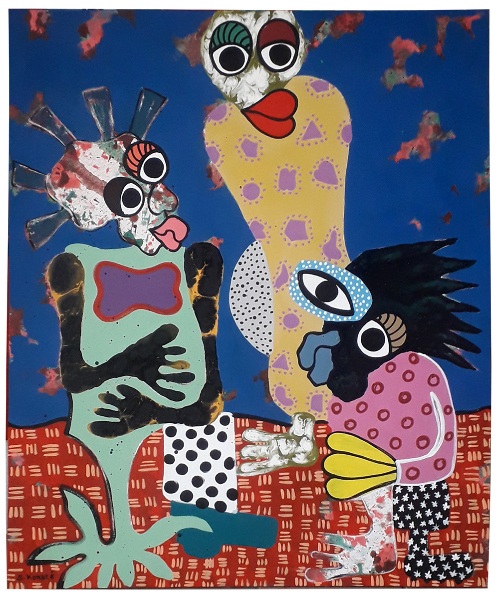 Les personnages hybrides de Soul occupent le devant de la scène. Ils sont immédiatement reconnaissables à leurs yeux globuleux, leurs bouches « découpées » et leurs formes organiques souples. À la fois humains, animaux et végétaux, ils sont nés de l’imagination débordante de Soul. Un imaginaire inspiré par la richesse de la cosmogonie bambara, peuple de la région du haut Niger au Mali, selon laquelle le premier homme est né d’une branche d’acacia. Il dit être également influencé par l’univers surréaliste de Bouabré, Picasso et Dali.