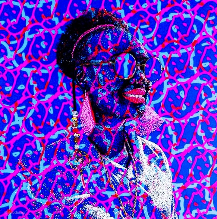 Il y a deux parties dans les œuvres d’Evans Mbugua. Le fond du tableau ressemble à un tissu couvert de motifs stylisés, répétitifs. Ces pictogrammes, l’artiste les repère dans les grandes villes comme Paris, où il travaille, ou Nairobi, où il est né. Par-dessus, sur une plaque de plexiglas