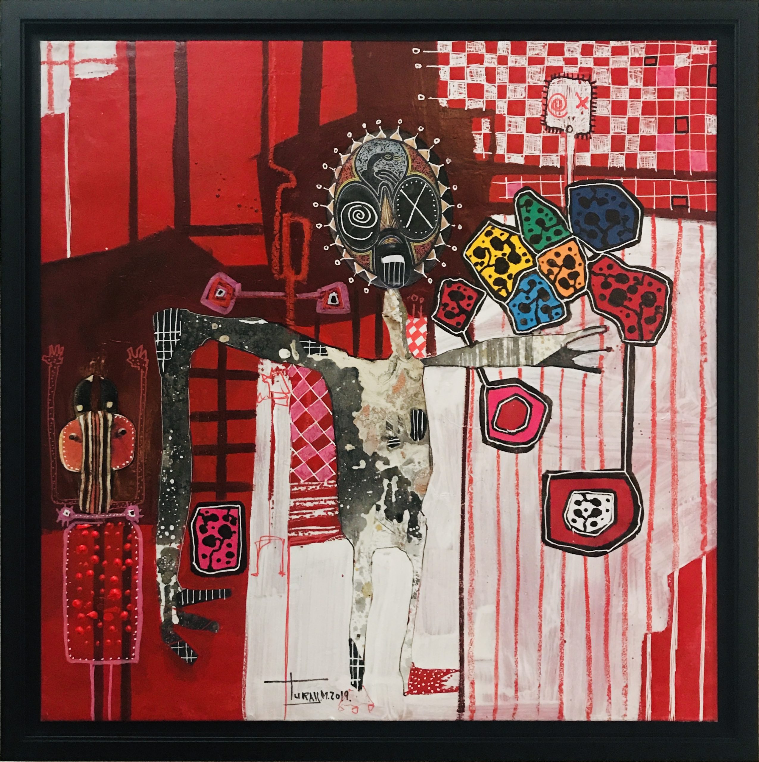 Mêlant des matières diverses, cet artiste contemporain ivoirien construit, coupe, accumule et compose avec une énergie et une spontanéité des symboles de moments de la vie, laissant ainsi ses « traces ».