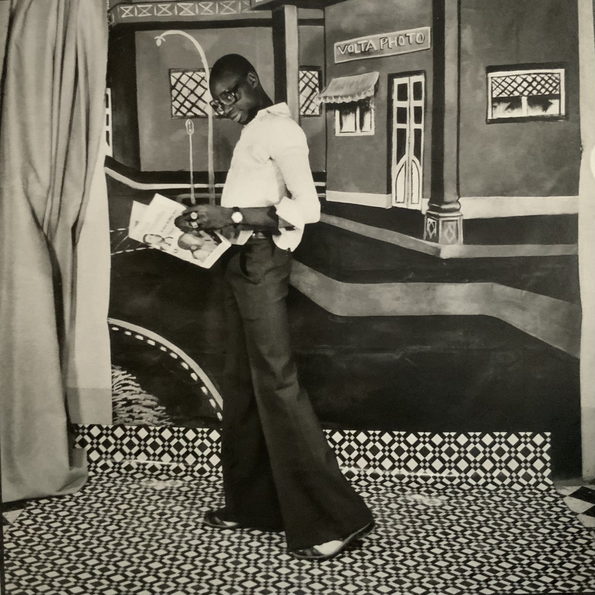 SANLÉ SORY photographe Burkinabé crée dans les années soixante, le Studio Volta Photo véritable espace de magie et de fantaisie sur plusieurs décennies (1960-1985). Ses photographies -archives vivantes ou instantanés de vie prises sur fonds de scènes peints, utilisent des accessoires de modernité de l’époque: téléphone, guitares, transistors, motos ou disques. Les vinyles symbolisent une véritable révolution culturelle post indépendance. Les photographies de Sanlé SORY célèbre les nuits yéyées de Bobo Dioulasso et  sont la bande-son originale et pourtant silencieuse de ces années dexubérance rythmée par la musique yéyé, le jazz, le rock ou les groupes voltaïques émergents – chacun y entend ce quil veut.