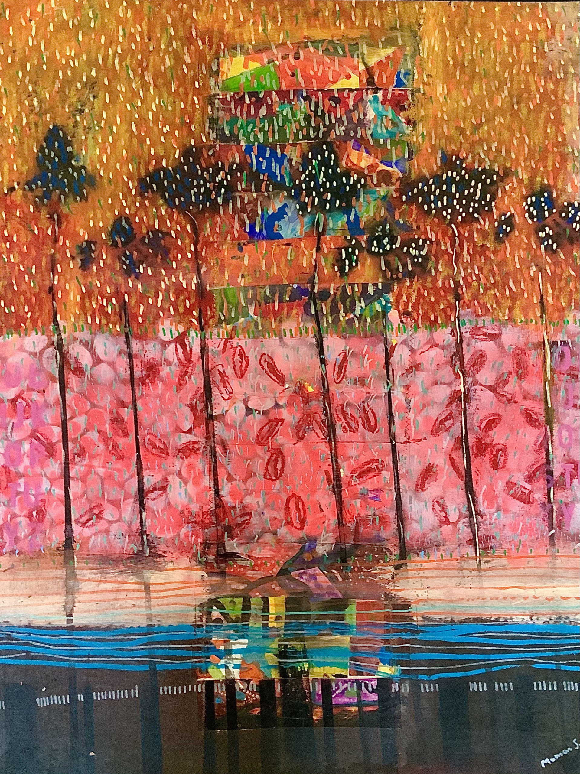 United Colors of Africa: Environment 6 fait partie d’une collection de toiles consacrées au thème de la préservation de l’environnement. Ce thème est récurrent dans l’œuvre de plasticien contemporain sénégalais. En effet, les œuvres de Momar Seck cherchent à immerger le public dans les réalités de la vie quotidienne, y compris les déchets et les débris, tout en évoquant les souvenirs et les traces de leur origine, ainsi que leur métamorphose. Elles reflètent notre existence actuelle, rehaussée par le caractère, la joie et la recréation d’objets de rebut. Les thèmes que l’on retrouve dans son art abordent souvent des questions de société telles que le consumérisme, la communication globale et comme ici l’environnement.
