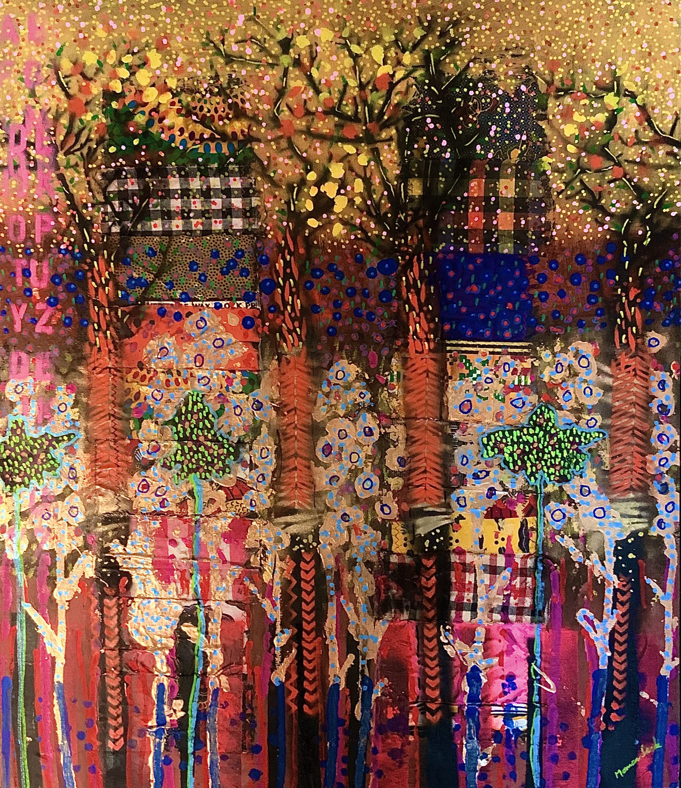 « United Colors of Africa: Environment 6 » fait partie d’une collection de toiles consacrées au thème de la préservation de l’environnement. Ce thème est récurrent dans l’œuvre de plasticien contemporain sénégalais. En effet, les œuvres de Momar Seck cherchent à immerger le public dans les réalités de la vie quotidienne, y compris les déchets et les débris, tout en évoquant les souvenirs et les traces de leur origine, ainsi que leur métamorphose. Elles reflètent notre existence actuelle, rehaussée par le caractère, la joie et la recréation d’objets de rebut. Les thèmes que l’on retrouve dans son art abordent souvent des questions de société telles que le consumérisme, la communication globale et comme ici l’environnement.